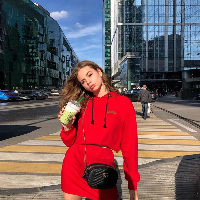 HAPPY SHOPPING Hot 2019 autumn new street fashion womens longsleeved drawstring loose hoodie high waist bag hip skirt twopiece suit by shopping at aliexpres with our recommendations, you will get a lot of discounts.