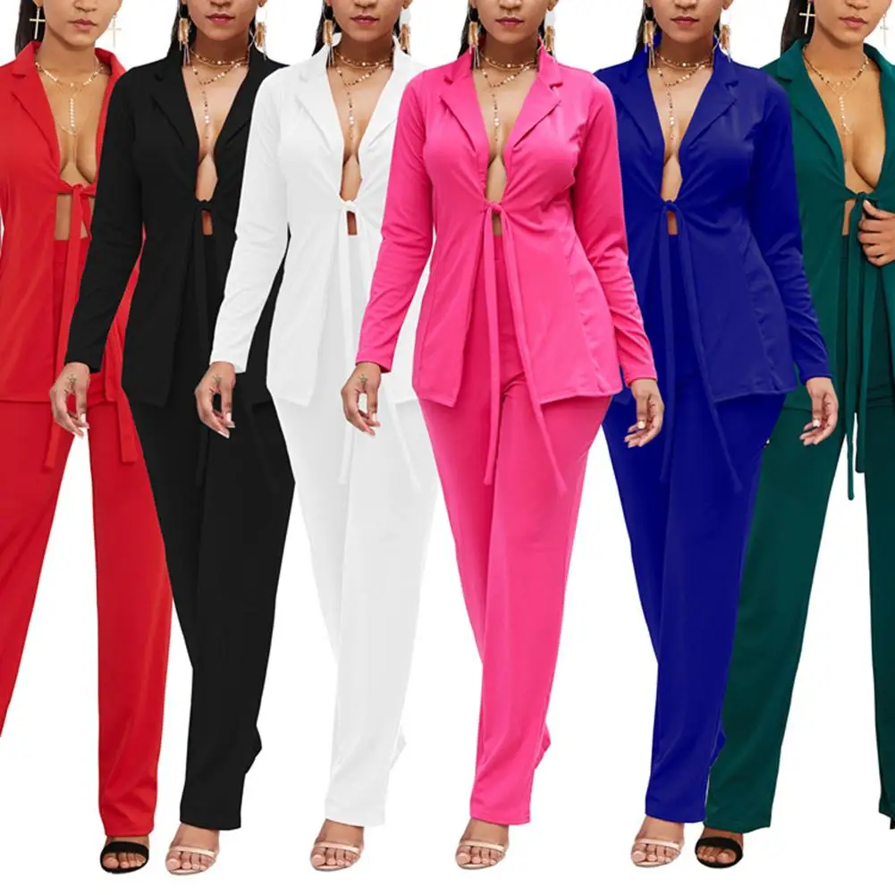 Press buy now for buy or full review Suit female 2019 autumn new temperament casual loose long suit jacket trousers solid color elegant fashion 2Pcs Long Sleeve Blaz